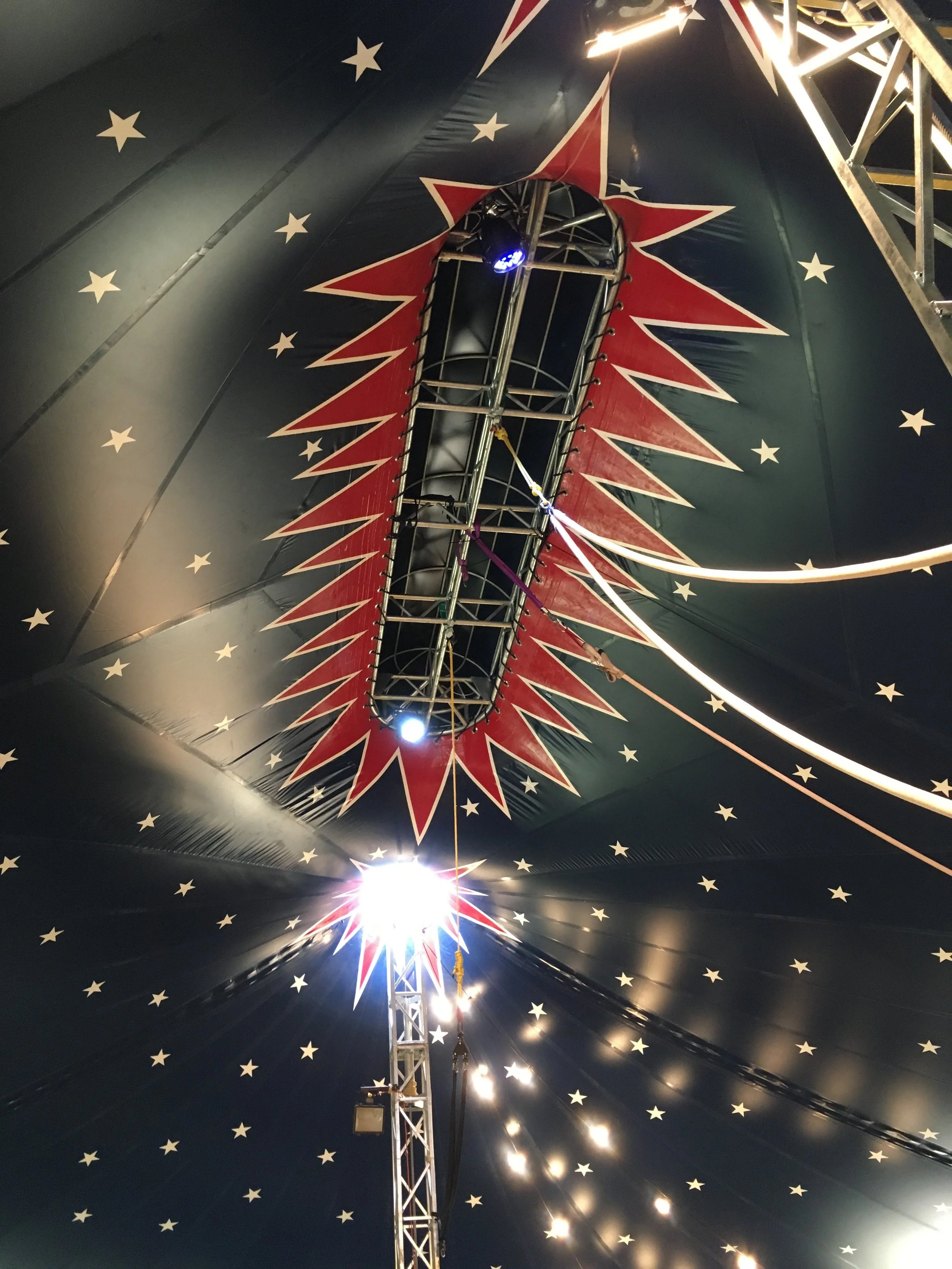The cupola sits at a height of 8m with several rigging points, making it easy and safe for all forms of circus rigging. The two kingpoles, made of square steel trussing, also provide plenty of space for safe hanging of lighting and sound equipment.